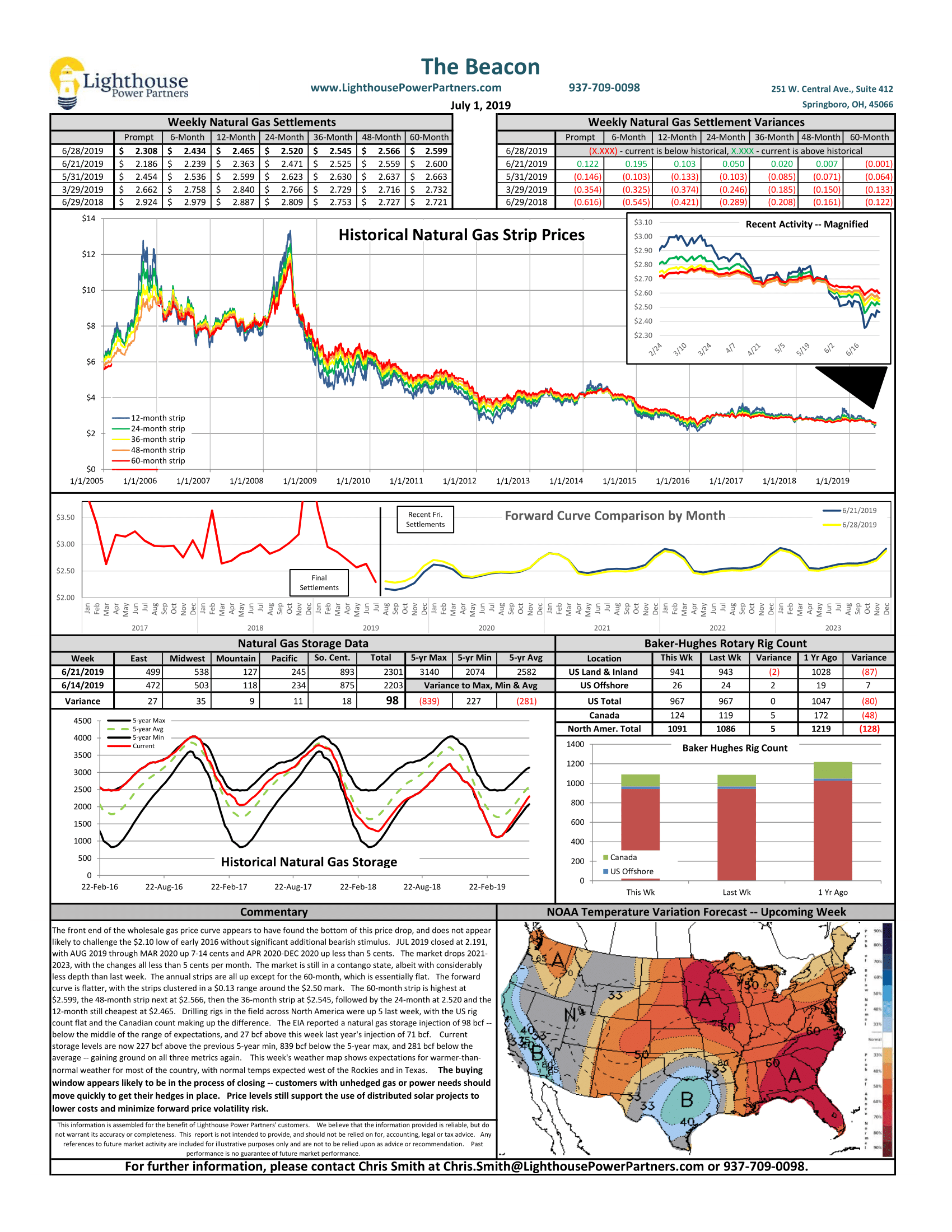 All good things come to an end, and we may be seeing the end of the recent price drop, as the front end of the price curve was up last week. If you were waiting to see how far prices would fall, I think we have your answer – time to get your contract executed before we lose out on these savings! Keep in mind that the holiday this week will impact our ability to get prices and contract acceptance later in the week -- give us a call or drop me a line at 937-709-0098 x701 to get your rate protected before that. Have a safe and fun Fourth!